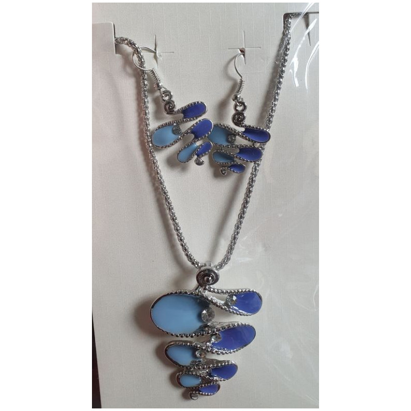 Collier avec boucles d'oreilles à crochet en émaux.